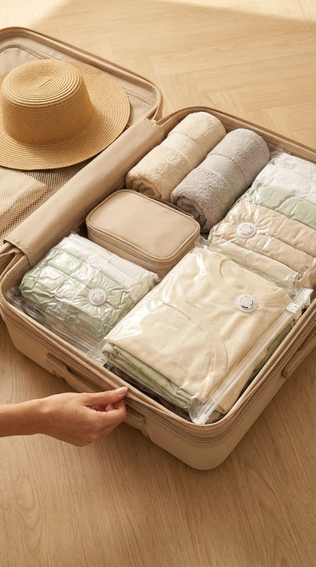 ✦ Gagnez plus de 80% d'espace dans vos valises et armoires sans effort.