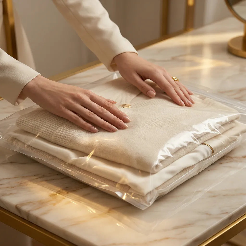 Vos trésors méritent un écrin. Nos sacs protègent de l'humidité, de la poussière et des mites. Gardez tout frais, propre et impeccable, comme un dressing de rêve.