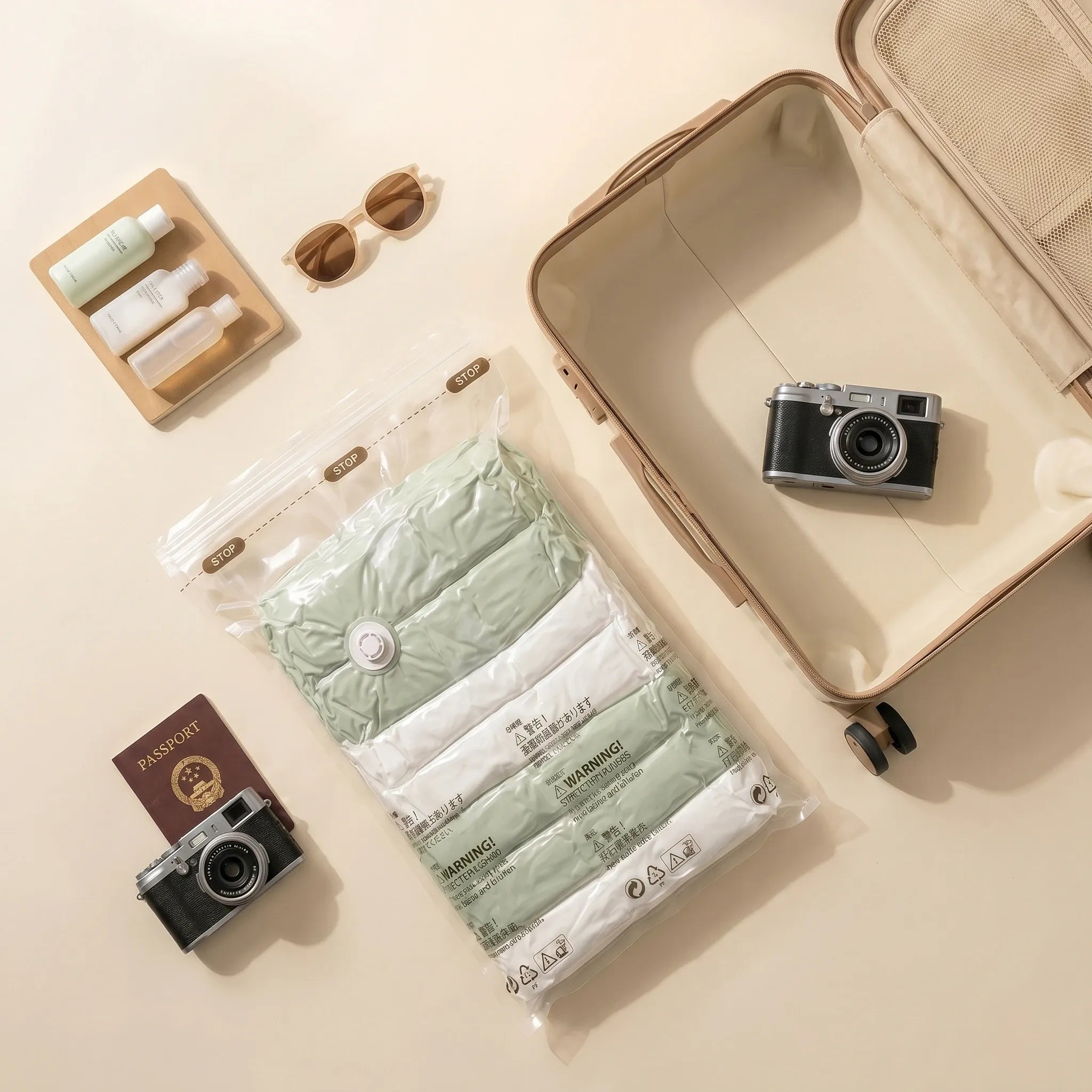 Envolées les galères de valise! Tes vêtements compressés doublent l'espace, sans pompe, en quelques secondes. Voyage léger, arrive chic, prêt pour l'aventure. L'organisation Kianore à portée de main.